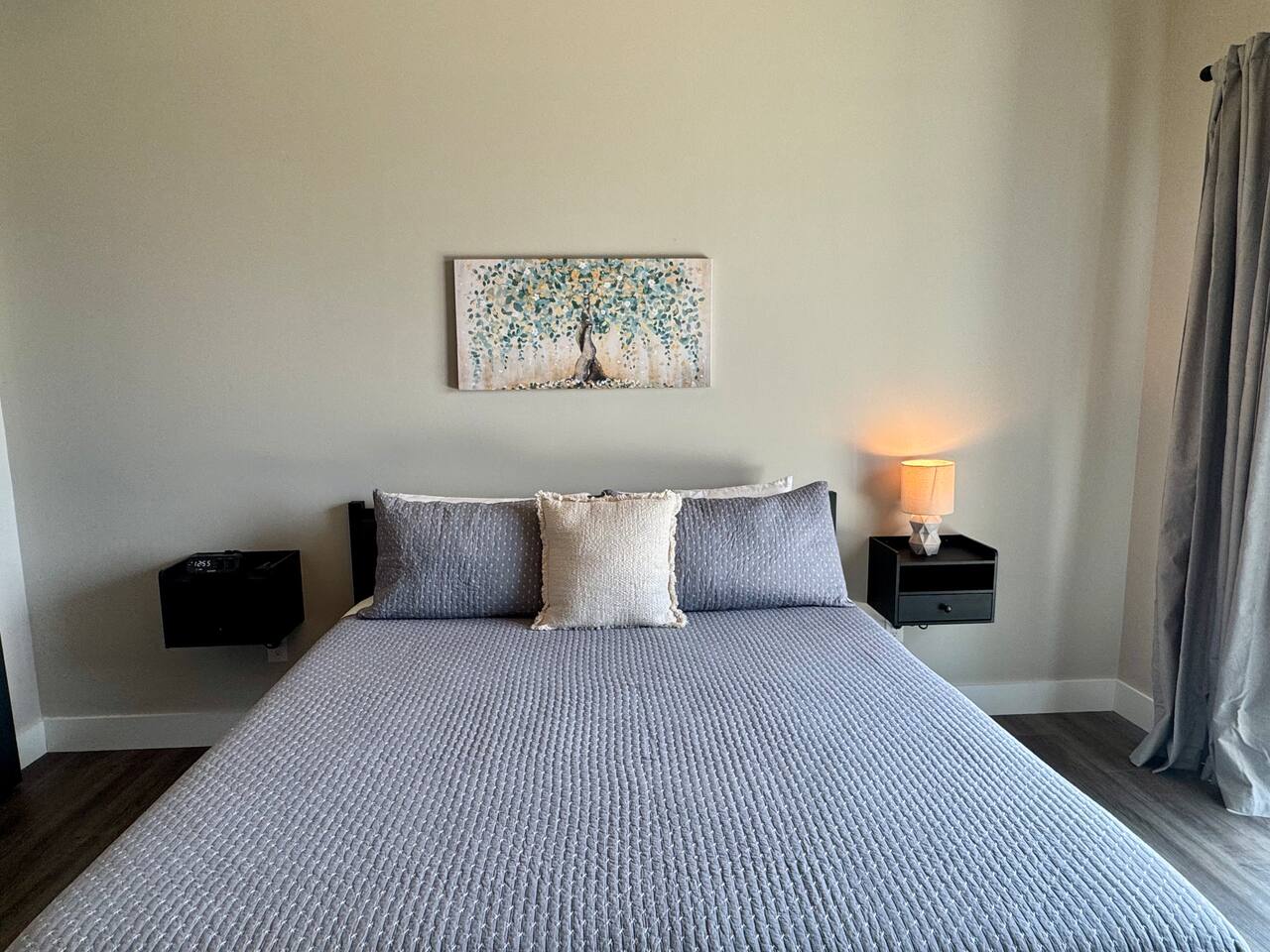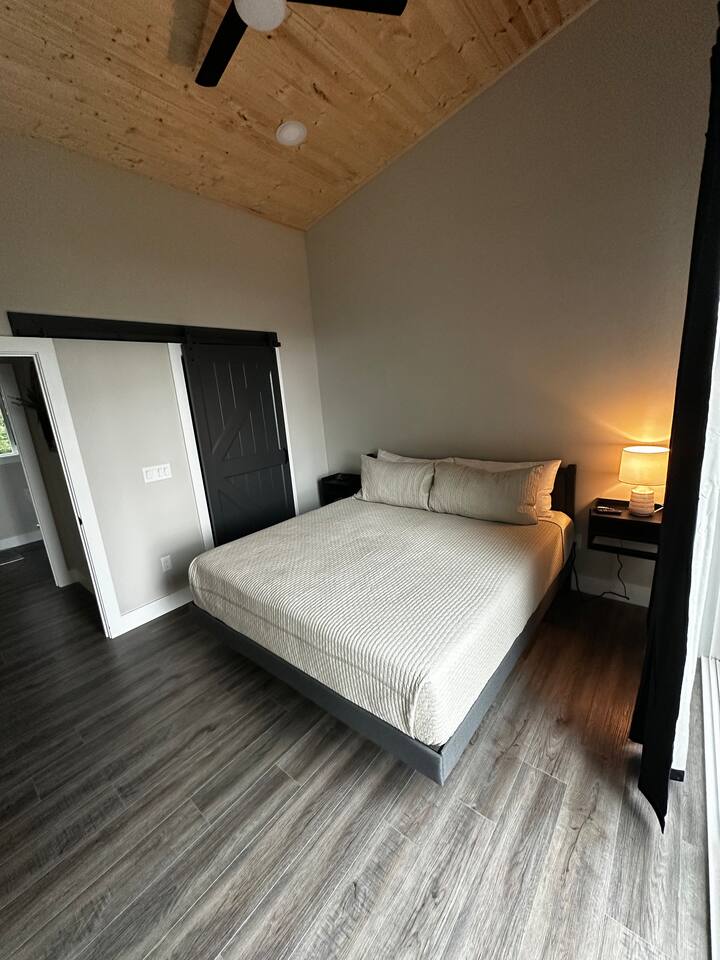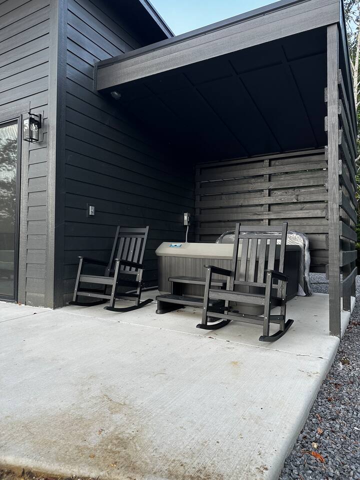 We spent 3 nights here and it was lovely. The mountain view was spectacular each evening at sunset. We enjoyed the pink/orange/red sky from the hot tub :). Everything is spotlessly clean, the bed was comfortable and living room seating easy to lounge on. Excellent communication with hosts- pay attention to the driving directions give- Waze stopped us short of the property as Quincy predicted, but we arrived w/o difficulty as we followed his instructions. There was more than adequate parking & room to turn vehicle around. The kitchen seemed adequately stocked, but we didn’t do a lot of cooking. This is a brand new property & we appreciated the lack of Knick-nacks collecting dust…that is a personal preference though :). Showers were great, they have thought of the things renters need. Would highly recommend.