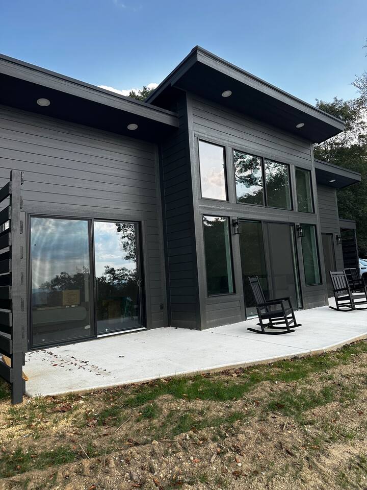 Set on the edge of Lookout Mountain, The Ledge on Lookout is a modern 2BR/2BA cabin with stunning views of the natural horizon. Watch golden sunsets through a wall of west-facing windows, soak in the private hot tub, or enjoy the rocking chairs on the patio. Designed with comfort, style, and serenity in mind—this is your place to disconnect, slow down, and stay awhile.