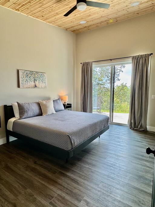 We spent 3 nights here and it was lovely. The mountain view was spectacular each evening at sunset. We enjoyed the pink/orange/red sky from the hot tub :). Everything is spotlessly clean, the bed was comfortable and living room seating easy to lounge on. Excellent communication with hosts- pay attention to the driving directions give- Waze stopped us short of the property as Quincy predicted, but we arrived w/o difficulty as we followed his instructions. There was more than adequate parking & room to turn vehicle around. The kitchen seemed adequately stocked, but we didn’t do a lot of cooking. This is a brand new property & we appreciated the lack of Knick-nacks collecting dust…that is a personal preference though :). Showers were great, they have thought of the things renters need. Would highly recommend.